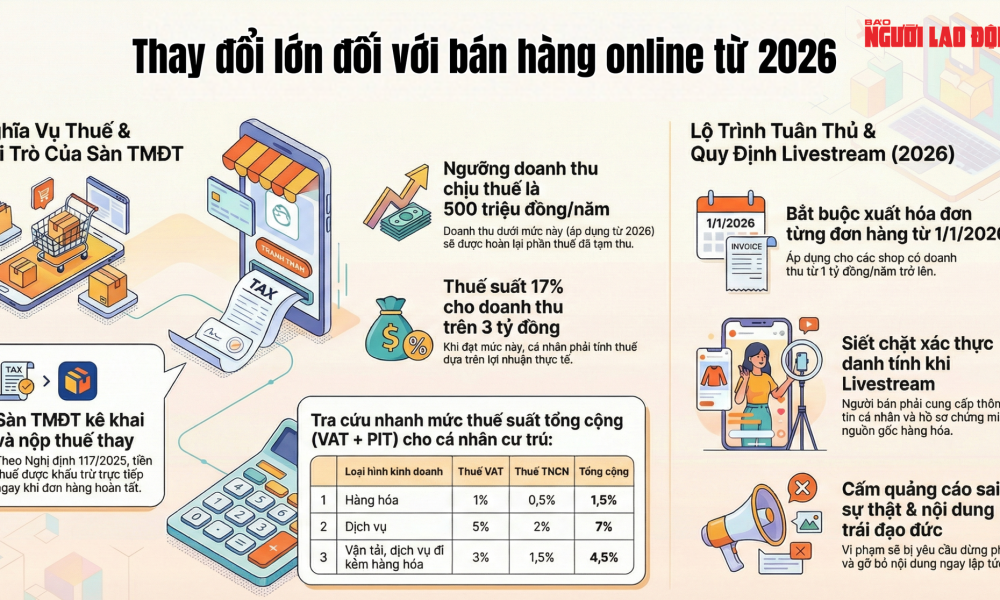 Từ năm 2026, chính sách thuế đối với hộ và cá nhân kinh doanh trên online sẽ có nhiều thay đổi quan trọng, nhà bán hàng...