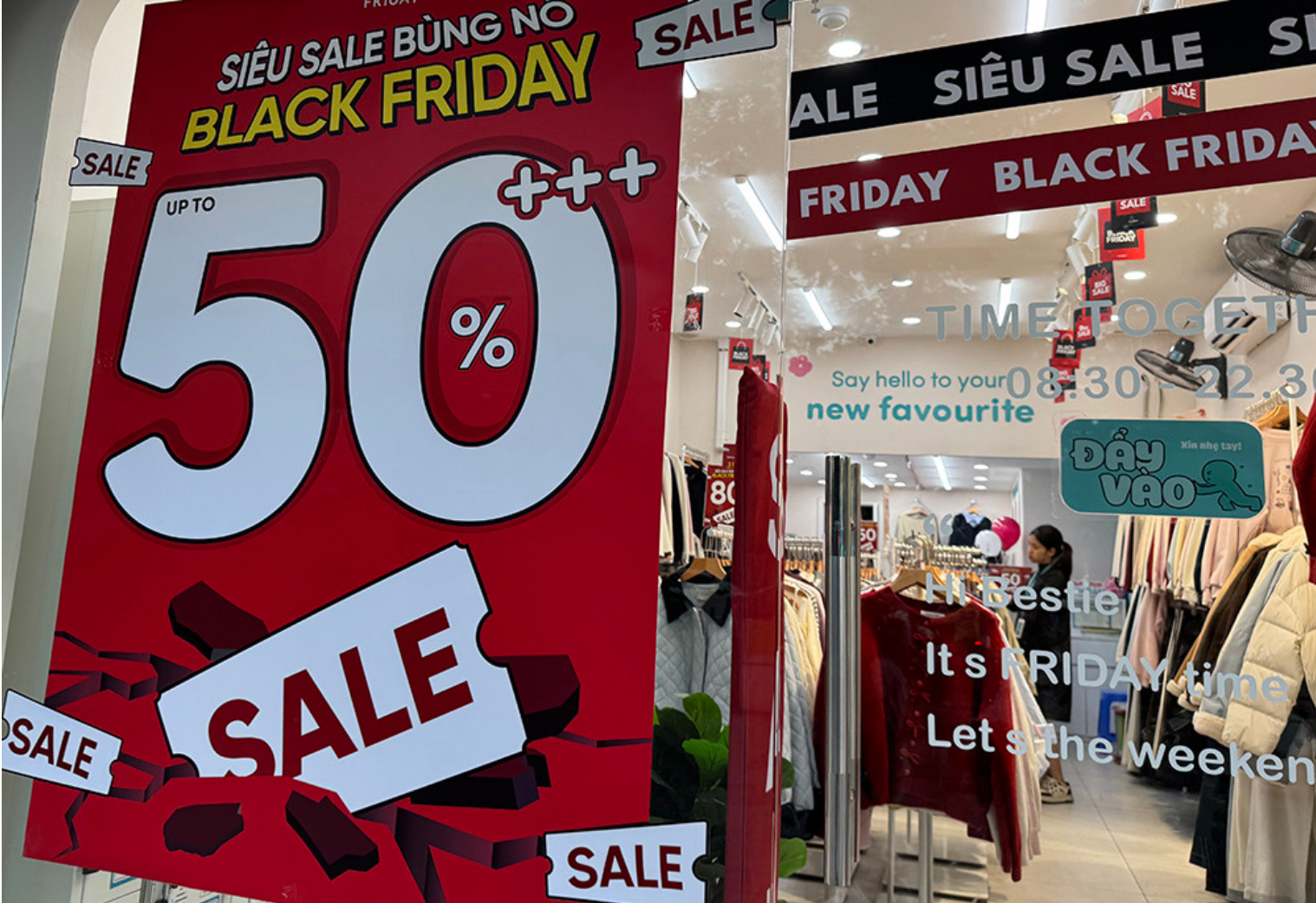 “Cửa hàng bắt đầu chạy khuyến mại dịp Black Friday từ đầu tuần, với mức giảm lên tới 80% nhưng khách vào xem rất ít. Người tiêu dùng dường như không mặn mà với mua sắm cuối năm”, một nhân viên tại phố Chùa Bộc cho biết.