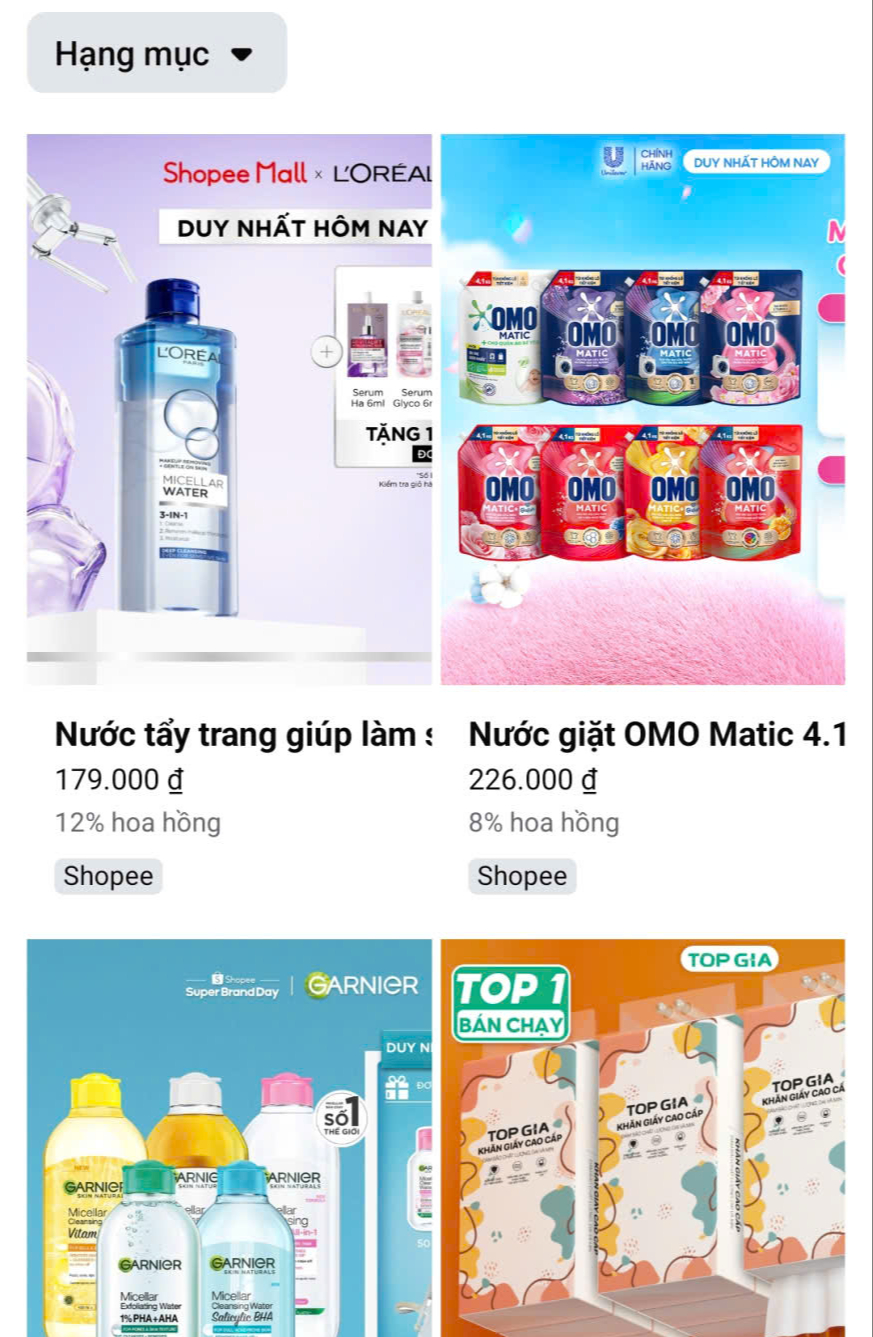 Theo ghi nhận, danh mục sản phẩm trong chương trình khá đa dạng, từ thời trang, đồ điện tử, ẩm thực đến nội thất, với mức hoa hồng trung bình 10-20%.